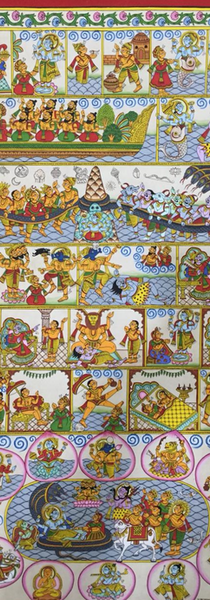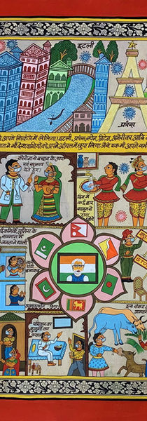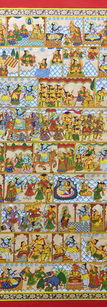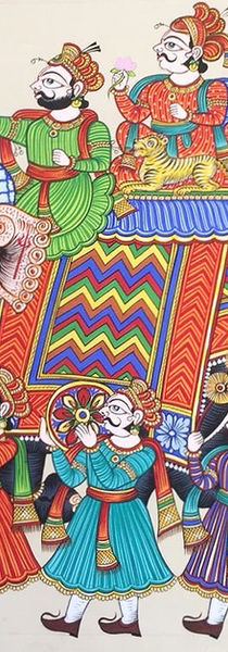 Phad is cloth & wall painting that visually depicts the story of the local hero-god. While the story is narrated using songs & dance, the visual impact provided by the phad. Stories of Pabuji & Devnarayan ji are populer in Rajathan, especially if they are in Phad style.